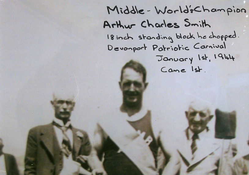 As a four-year-old he was a mascot for the South Easter Axemen’s Association. A representative of Hytest axes was at Mount Gambier Show and wanted him to be photographed with an axe to “show: their axes in action. They provided him with a little Hytest Axe and his father, Ted has an association blazer made for him – so he set to chopping, stopping now and again through the chop for a photo “opportunity”.
