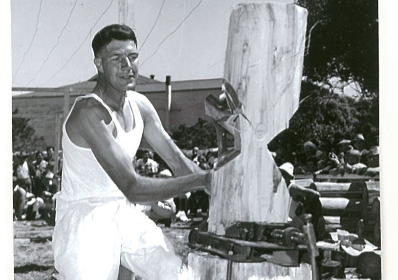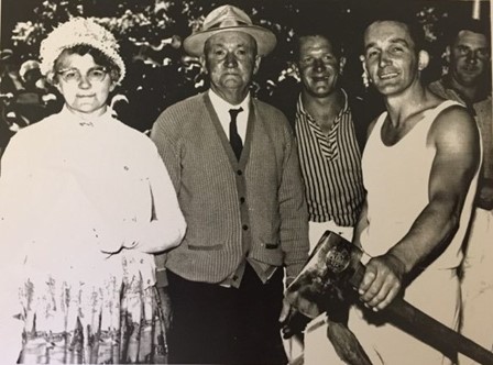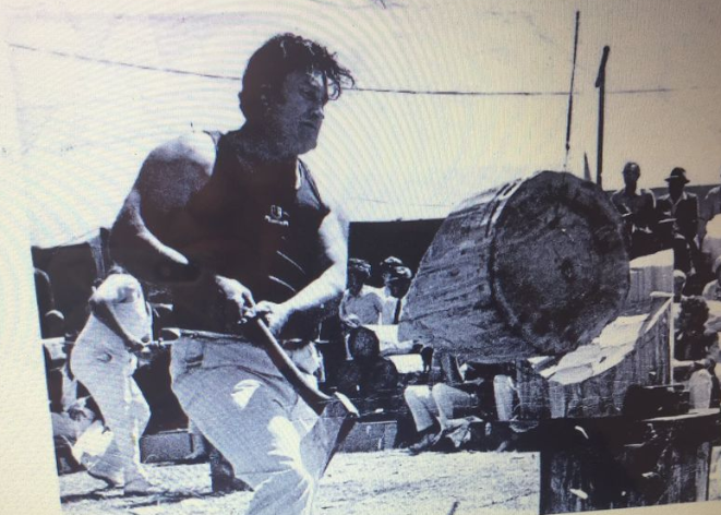 At 28 years, Gordon was already well into everything his loved sport entailed. There was a New Year’s Day chop at Vansittart in Mt Gambier and Gordon organised the logs for it. He went to Phillips Track in the Otway’s, felled one tree across the track – out of that he got enough logs to do the whole woodchop there was not one know in any log. All the competitors commented – it was beautiful wood.