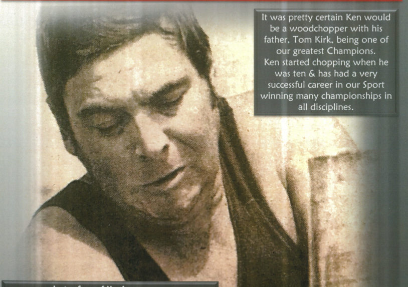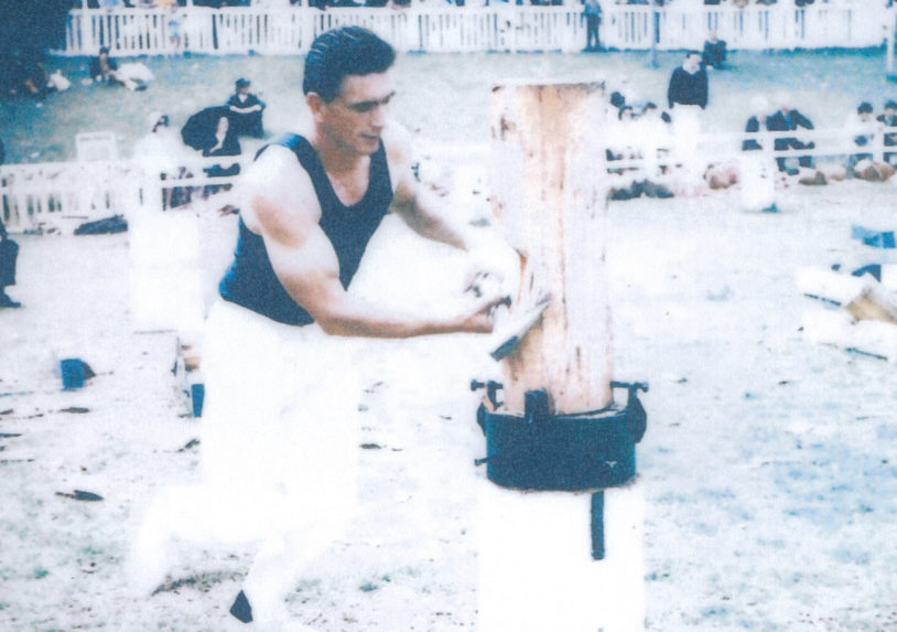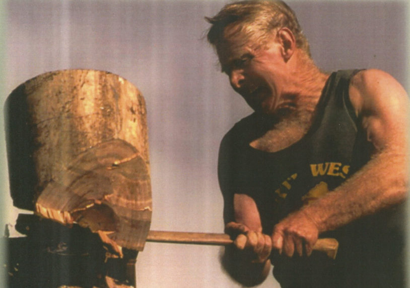 IN 1970, as a 17-year-old, he travelled to Tasmania on the boat “Australian Trader” to the World Centenary of Woodchopping as a member of the South Australian Woodchopping Team. Gordon has related that this was a real eye opener to see the world’s best woodchoppers and the huge crowds, 10,000 people to watch, children collect a chip, then go around getting it signed by famous axemen.
