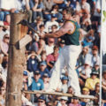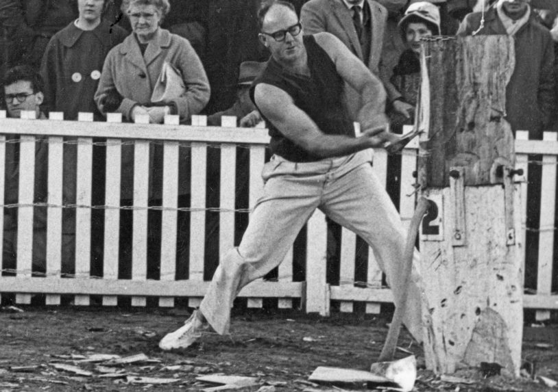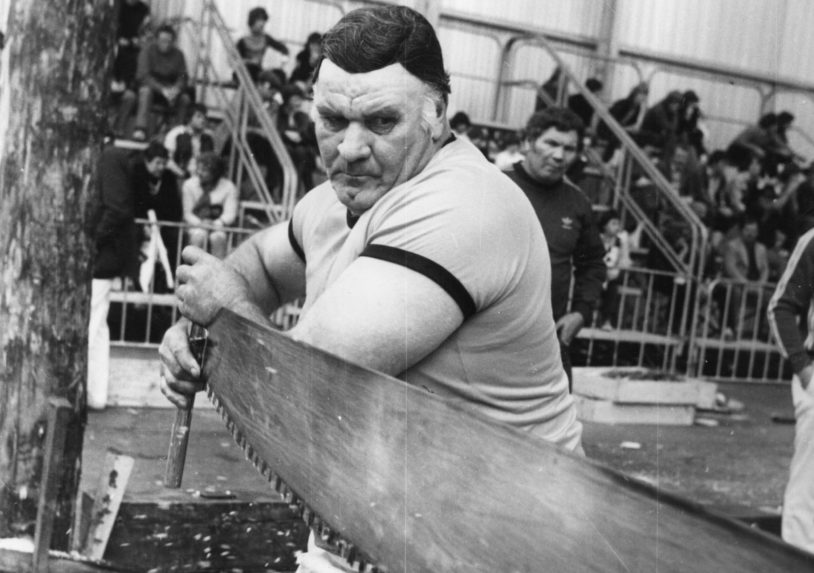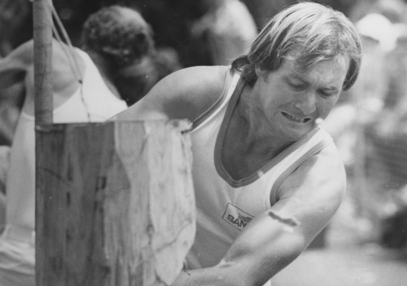 Justin, known to his friends as “Junk”, comes from the foothills of the Watagan Mountains near Cessnock, in the NSW Hunter Valley. A quiet unassuming giant of a man, Justin has taken over the double handed sawing crown from the Foster monopoly, mainly pairing with Tom Kirk’s grandson, Steven Kirk. His father Robert was also a respected single and double handed sawyer.