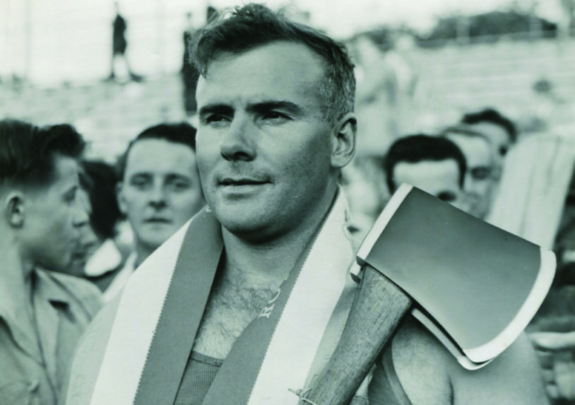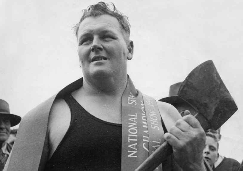 Justin, known to his friends as “Junk”, comes from the foothills of the Watagan Mountains near Cessnock, in the NSW Hunter Valley. A quiet unassuming giant of a man, Justin has taken over the double handed sawing crown from the Foster monopoly, mainly pairing with Tom Kirk’s grandson, Steven Kirk. His father Robert was also a respected single and double handed sawyer.